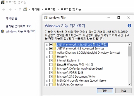 Windows 기능 켜기/끄기